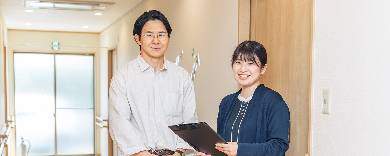 現在、啓和会が運営する施設では、福祉系の学科出身者だけではなく、飲食、製菓運送、芸能関係、不動産営業などなど、さまざまな業種から転職してきたスタッフが多数活躍しています。